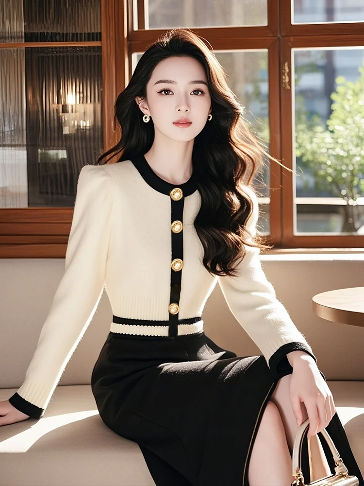 2025 winter new women's clothing rich family daughter feeling wear small fragrant white knitted sweater slim spring and autumn top