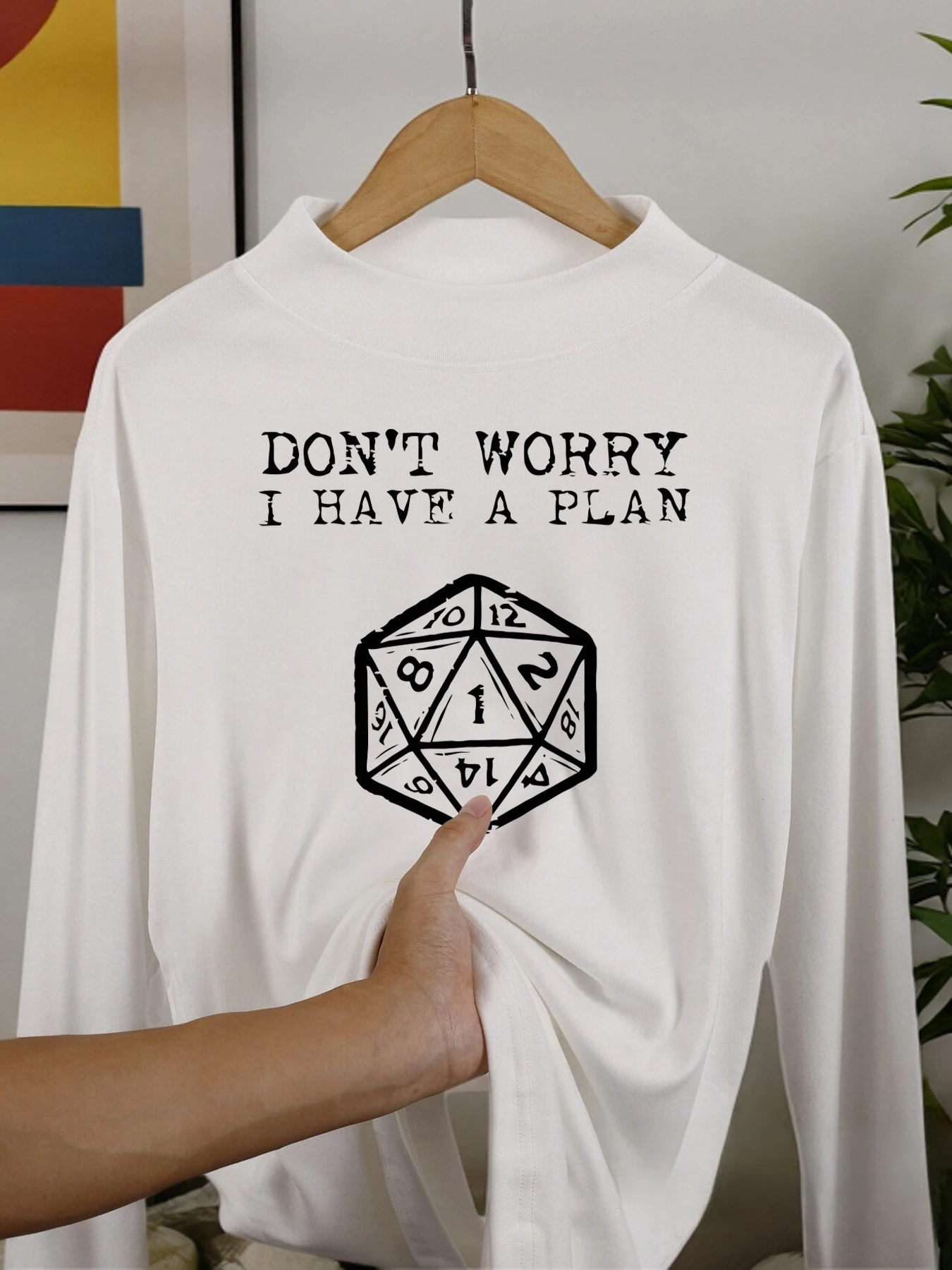 Don'T Worry I Have A Plan Print Male Long Sleeved Shirts Winter Autumn Base Layer Casual Fashion Clothing Middle Collar Shirt