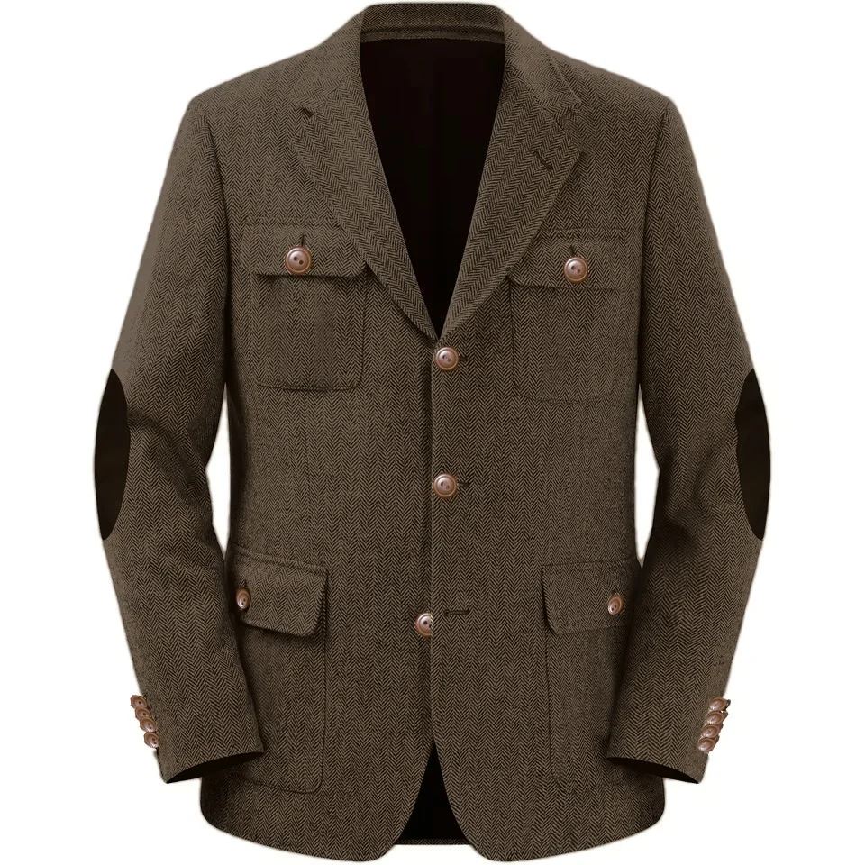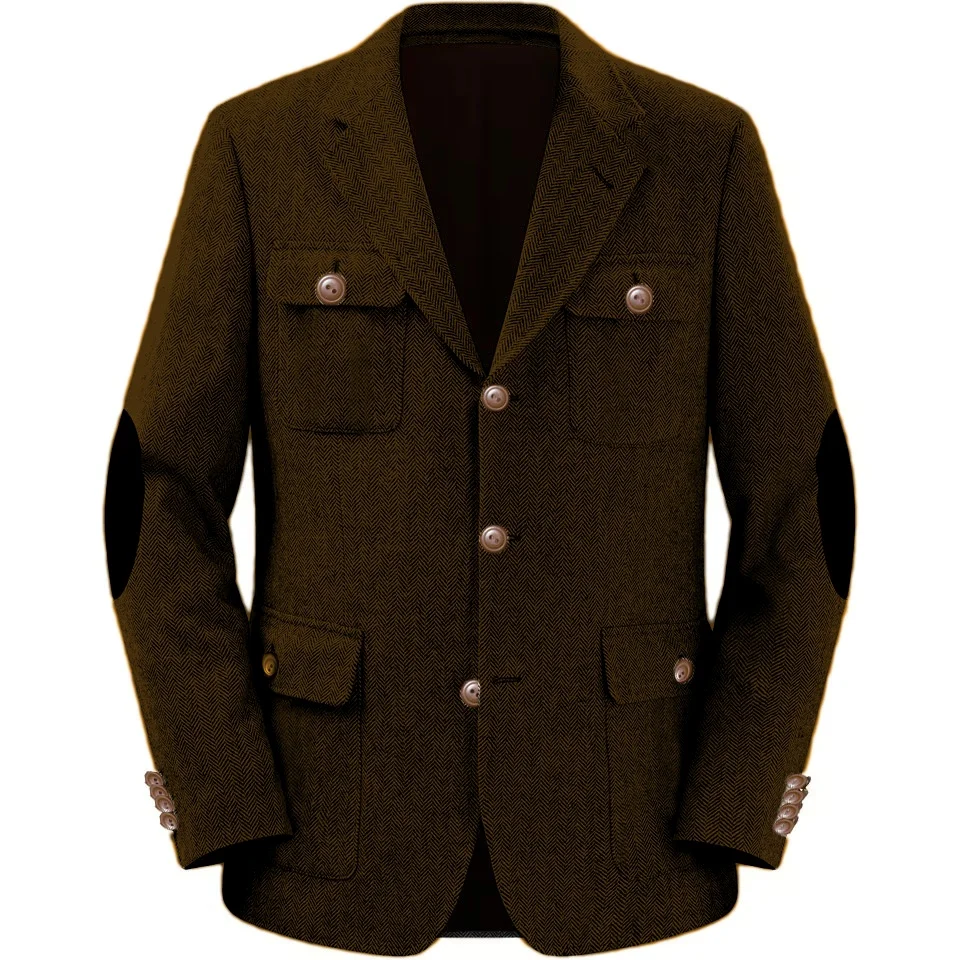 This jacket is not just about style; it's about adaptability. The single-breasted design offers a modern twist on traditional tailoring, making it a staple in the modern man's wardrobe. The thick-set dress is perfect for the cooler months, providing warmth without sacrificing mobility. The retro herringbone pattern adds a touch of vintage flair, making it a unique addition to any man's collection. With its ability to transition seamlessly from daytime to evening wear, this blazer is the quintessential piece for the man who values both style and functionality.
