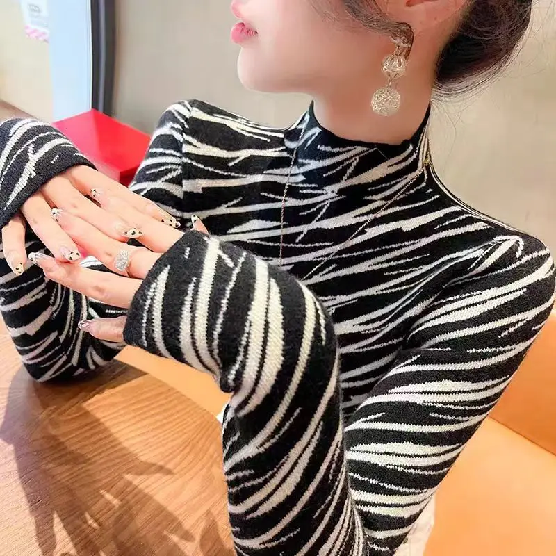 Women Clothing Chic Half High Collar Long Sleeve Knit Pullovers Autumn Winter Elegant Slim All-match Sweaters Office Lady Tops